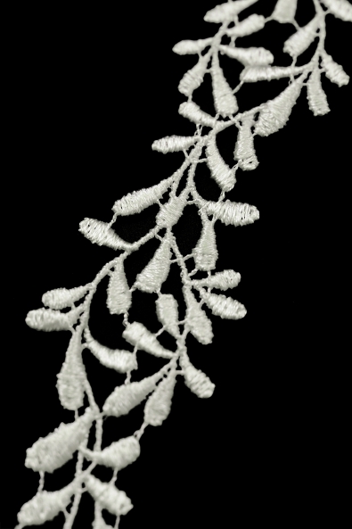 Das hochwertigste, schmucklose Band aus Gipüre. Perfekt als Schmuckrand von Kleidern und Tischdecken, Vorhängen oder anderen Textilien. Die gewölbte Form und das interessante Maschenmuster verleihen dem Stoff einen dezenten dekorativen Akzent.