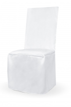 Matte fabric cover in white color, universal, without pleats. The dimensions shown in the picture are the maximum length; the covers also fit nicely on smaller chairs.