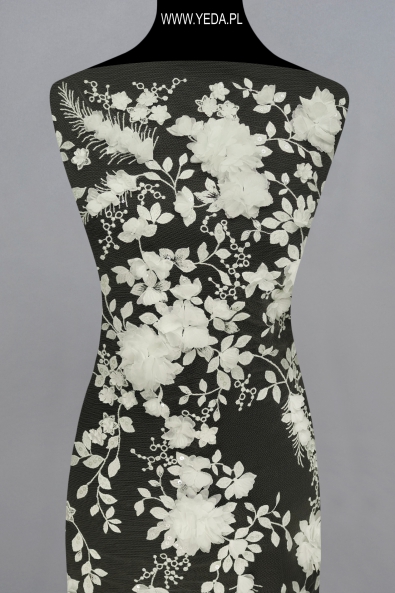 High-quality embellished lace with a unique pattern and decorative details. It was created for the most demanding women who want to achieve unique and effective styling. The presented lace will be perfect as a base for a wedding or evening creation. It owes its charm to the details on it. They reflect light and illuminate the material, and consequently catch the eye.