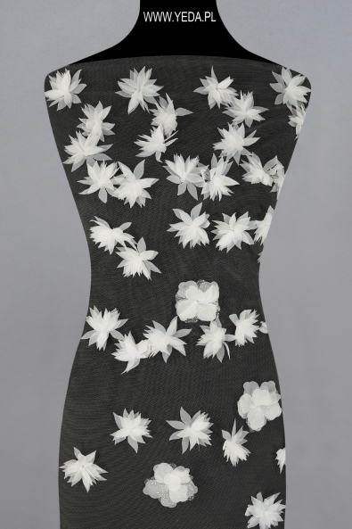 High-quality embellished lace with a unique pattern and decorative details. It was created for the most demanding women who want to achieve unique and effective styling. The presented lace will be perfect as a base for a wedding or evening creation. It owes its charm to the details on it. They reflect light and illuminate the material, and consequently catch the eye.