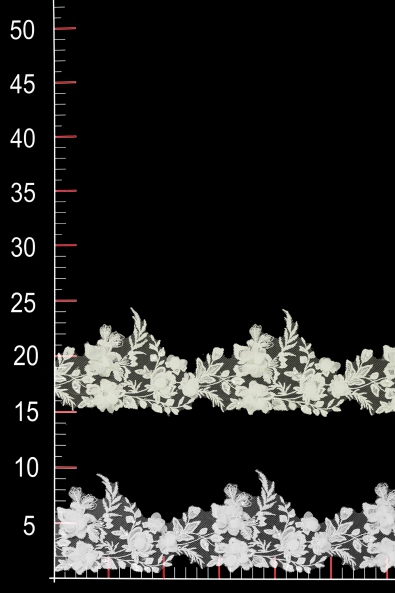High quality decorated trim, created from extremely elegant lace. It delights with beautiful patterns and accessories that emphasize the charm of the fabric decorated with it. It is the perfect culmination of any wedding, evening or cocktail dress. This inconspicuous detail catches the eye and evokes admiration.