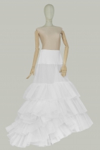 Halka z elastycznym karczkiem, trzema falbanami i trenem, usztywniona trzema fiszbinami. Tren dopinany na guziczki.